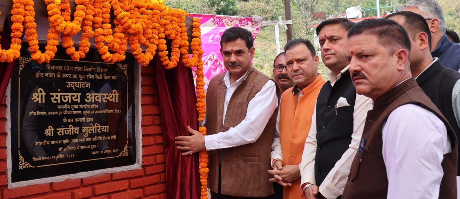 बल्ह,27 अक्तूबर : रविवार को बल्ह विकास खंड की ग्राम पंचायत लुहाखर में 87 लाख 50 हजार की राशि से नवनिर्मित 90 फुट स्पेन ब्रिज का विधिवत रूप से पूजा अर्चना करने के बाद उद्घाटन कर मुख्य संसदीय सचिव लोक निर्माण, स्वास्थ्य एवं परिवार कल्याण व सूचना एवं जनसंपर्क विभाग, संजय अवस्थी ने उद्घाटन कर जनता को समर्पित किया।