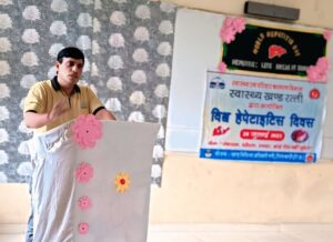 खंड चिकित्सा अधिकारी रत्ती डॉ पीयूष वैद्यया के सौजन्य से हिमालयन नर्सिंग कॉलेज नेरचौक में कॉलेज की प्रिंसिपल श्रुति भारद्वाज की अध्यक्षता में विश्व हेपेटाइटिस दिवस मनाया गया इस दिवस पर खंड स्वास्थ्य शिक्षक रत्ती सुरेश चन्देल ने कॉलेज की छात्राओं को बताया कि हेपेटाइटिस दिवस मनाने का मुख्य उद्देश्य हेपेटाइटिस बीमारी के बारे में लोगों को जागरूक करना है हेपेटाइटिस तब होता है जब कोई चीज आपके लिवर में सूजन पैदा कर देती है ।