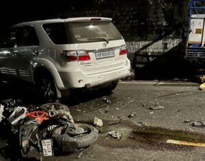 बाइक HP06B-3768 में दो युवक सवार थे। बाइक चालक सतपाल उर्फ़ बिल्लू उम्र 23 वर्ष पुत्र स्वर्गीय टाकू राम निवासी वार्ड नंबर 2 चूहाबाग डाकघर खनेरी तहसील रामपुर जिला शिमला और आर्यन उम्र 18 वर्ष पुत्र संगत राम वीपीओ किरटी तहसील कुमारसैन जिला शिमला हिमाचल प्रदेश की मौके पर ही मौत हो गई। टक्कर मारने वाली गाड़ी फॉर्च्यूनर HP06B-0013 में एक व्यक्ति सवार था जिसकी पहचान इंटक के प्रदेश उपाध्यक्ष बिहारी सियोगी उम्र 53 वर्ष पुत्र स्वर्गीय अमर सिंह निवासी कोशघर डाकघर मझेवली तहसील रामपुर जिला शिमला हिमाचल प्रदेश के रूप में हुई।