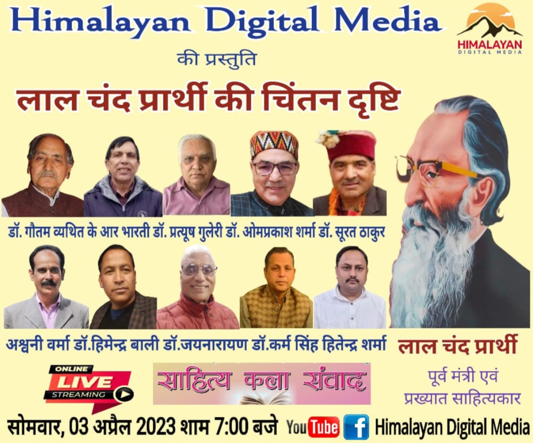 हिमालयन डिजिटल मीडिया द्वारा लाल चंद प्रार्थी के जन्म दिवस के अवसर पर ऑनलाइन संगोष्ठी का आयोजन किया गया जिसमें डॉ.गौतम शर्मा व्यथित, डाॅ. प्रत्यूष गुलेरी, डॉ. ओम प्रकाश शर्मा, डॉ. हिमेन्द्र बाली, मदन हिमाचली, डॉ. जयनारायण कश्यप, डॉ. सूरत ठाकुर, अश्वनी वर्मा, हितेन्द्र शर्मा, के आर भारती तथा डॉ. कर्म सिंह आदि विद्वानों ने परिचर्चा में भाग लिया।